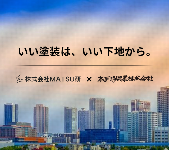 下地のプロフェッショナル「木戸浦興業」様との連携により、MATSU研の塗装技術だけでは到達できなかった、より一層安全で、長時間の美観及び住環境を快適に保つことが可能になりました。